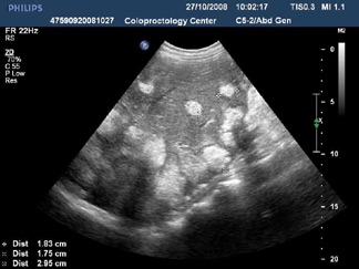 Ультразвуковое исследование, выполненное во время операции, позволяет оценить распространенность патологического процесса толстой кишки и оптимизировать выбор объема хирургического вмешательства.